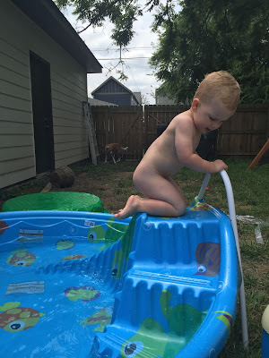 We spent a lot of time in the pool - whether at one of the local YMCA's or in kiddie pools in our backyard. We started with a basic green pool but quickly upgraded to one with a slide!